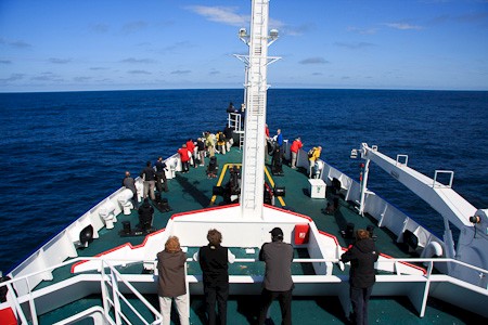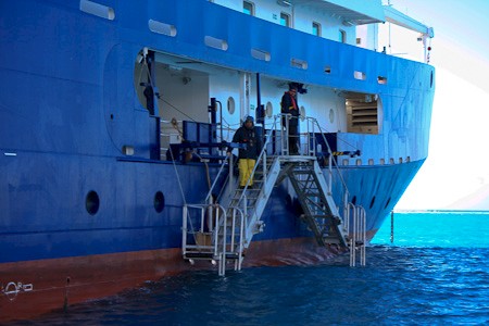 De expeditieleiding, kok, purser en arts zijn internationaal, Engelssprekend.